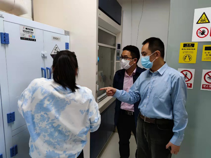 本次安全检查主要针对学院实验室在工信部和学校安全生产督查中发现的安全隐患和整改落实情况,认真检查了危化品存储与出入库管理、危废暂存间的分类存贮、高压气瓶的使用及管理、实验安全用品的配备和管理等方面的整改落实情况,并对实验室进行全面细致的安全隐患排查。