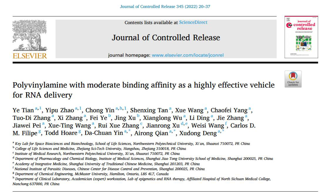 近日,由yl7703永利集团尹大川教授生物大分子研究室和骞爱荣教授骨代谢研究室组成的联合研究团队在RNA递送载体领域取得重要进展。团队研究发现阳离子型高分子聚乙烯胺(polyvinylamine, PVAm)可用于多种RNA的体外和体内递送,具有转染效率高、安全性好、经济性好等优势,相关研究成果发表于药学顶级学术期刊Journal ofControlledRelease(2022, 345, 20-37)上。