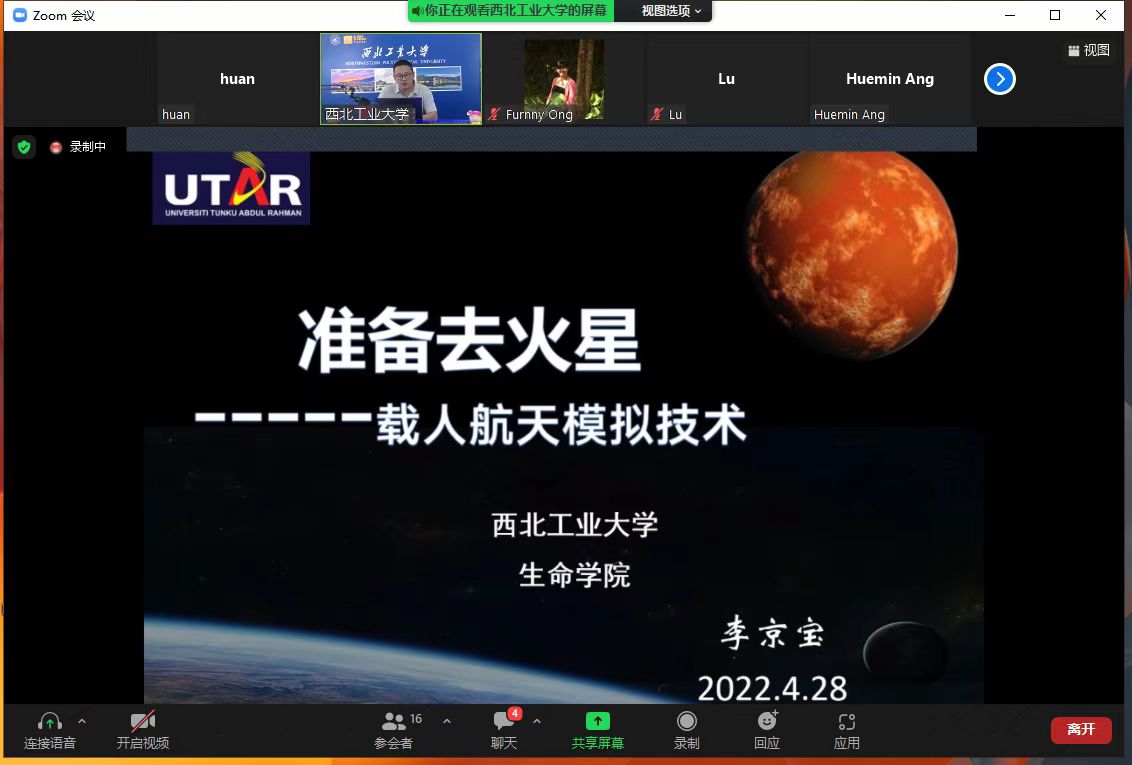 宣讲会上,李京宝作题为“准备去火星--载人航天模拟技术”科普讲座,并穿插介绍了yl7703永利集团和我院专业设置、人才培养和科学研究基本情况,欢迎同学们关注yl7703永利集团和yl7703永利集团。汉语中心李婧老师介绍了中国和西安文化,刘璐老师就入学申请相关流程及注意事项进行了详细的说明和补充,三位宣讲老师与参会者进行了互动,就提出的问题进行了详细的解答,同时表达了对同学们报考的欢迎,并期待可以早日在校园内与大家相见。