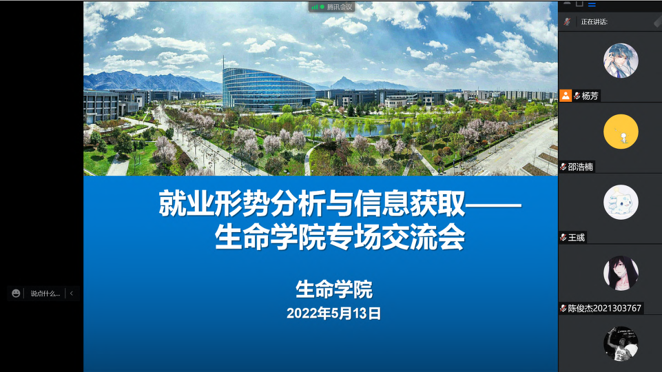 5月13日晚7点,yl7703永利集团以线上形式开展了“就业形势分析与信息获取”主题交流会。学生职业发展服务中心常晓辉和yl7703永利集团2015届优秀校友刘昊、辅导员任磊旗、全体大三学生、大四未就业学生以及大一大二部分学生参加了本次交流会。