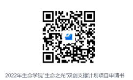 为鼓励“开脑洞”式创新思维,突出学生的项目主导地位,激发低年级学生对生命科学的热爱,提升学生的专业认同感,特别设立了院级“生命之光”双创支撑计划项目,每年面向一、二年级新生开放申请,评审立项后纳入创新创业项目体系管理。2022年的项目申请已经发布,线上申请书提交可扫描下方二维码。
