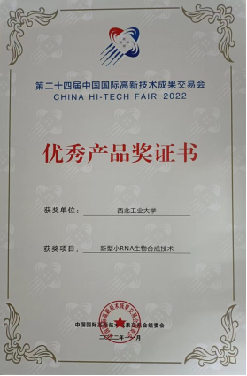 2022年11月15-19日,第二十四届中国国际高新技术成果交易会(CHINA HI-TECH FAIR 2022)在深圳会展中心五楼梅花厅举行,我校yl7703永利集团骞爱荣教授团队凭借“新型小RNA合成技术”在此次会上获得优秀产品奖。