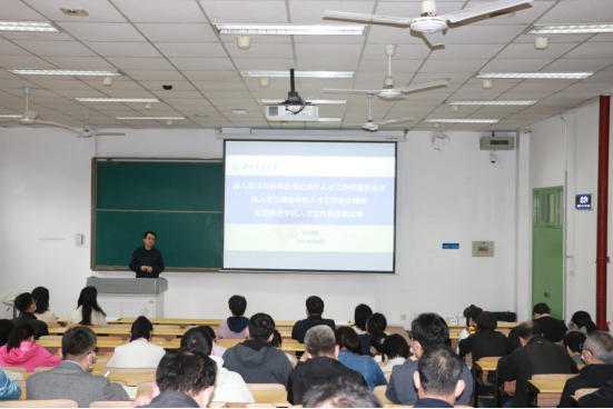 院长尹大川作了题为《深入学习习近平总书记关于人才工作的重要论述 全面推进学院人才工作高质量发展》的主题报告。报告详细分析了学院人才队伍建设现状,结合学院“十四五”规划目标剖析了短板弱项和深层原因,结合学院实际提出了下一步举措,并就新发布的《yl7703永利集团全员引才“揭榜挂帅”实施办法》进行了解读,号召全体教职工积极参与人才引进工作,不断提升学院核心竞争力。