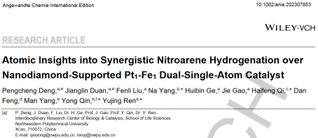 近日,yl7703永利集团任煜京副教授、覃勇教授团队在国际知名期刊《Angew. Chem. Int. Ed.》(IF: 16.6)上发表题目为“Atomic Insights into Synergistic Nitroarene Hydrogenation over Nanodiamond-Supported Pt1-Fe1 Dual-Single-Atom Catalyst”的研究论文。本研究工作通过将Pt1单原子位点锚定在类酶Fe1-N4位点修饰的纳米金刚石(ND)表面,成功构筑了Pt1-Fe1/ND双单原子催化剂,并进一步以该催化剂为研究对象,在原子尺度下揭示了双金属位点协同催化芳香硝基化合物选择加氢反应的本质。