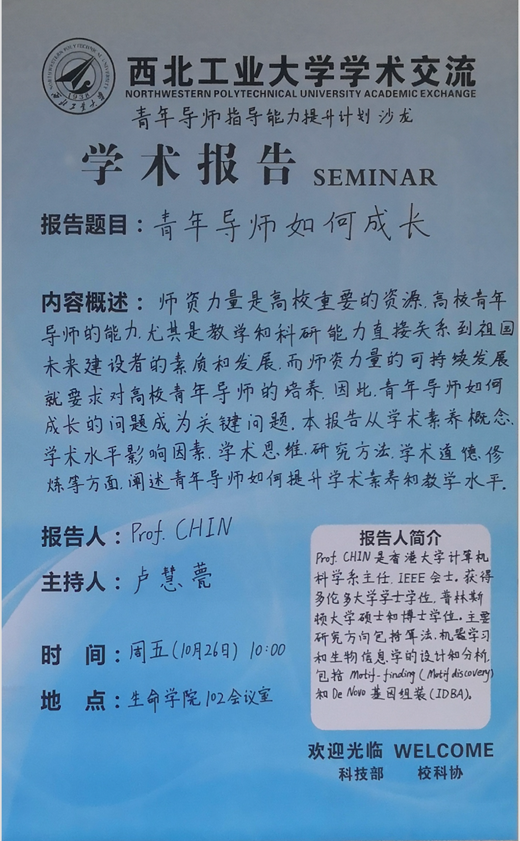 Prof.CHIN是香港大学计算机科学系主任,IEEE会士。1972年获得多伦多大学学士学位;1974年、1975年和1976年分别获得普林斯顿大学理科硕士、文科硕士和博士学位。主要研究方向包括算法、机器学习和生物信息学的设计和分析,包括Motif-finding和De Novo基因组装(IDBA)。
