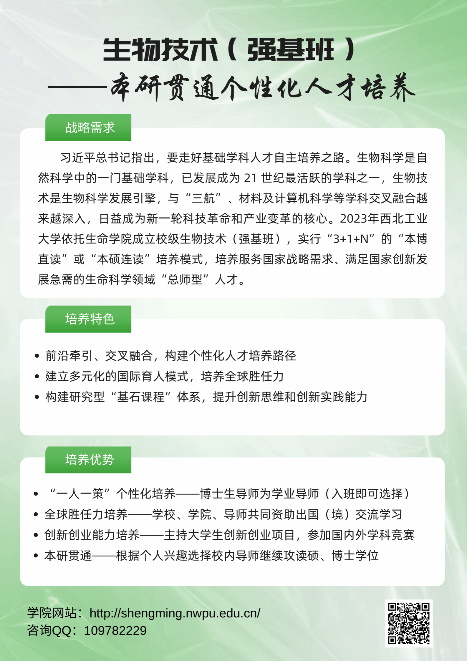 为培养服务国家战略需求、满足国家创新发展急需的生命科学领域领军人才,根据《yl7703永利集团生物技术(强基班)人才培养实施办法》,现开展2023级生物技术(强基班)动态转入工作。