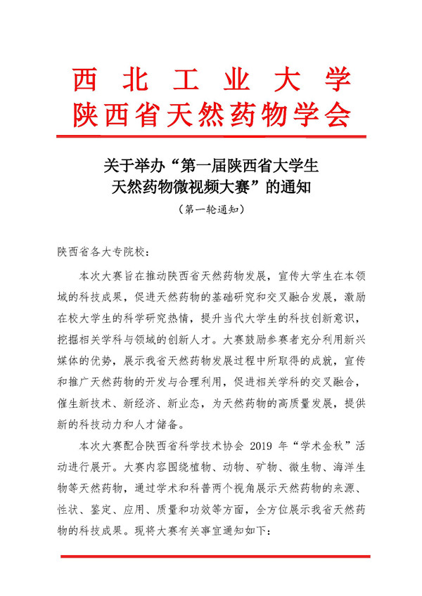 关于举办2019年陕西省大学生天然药物微视频大赛的通知