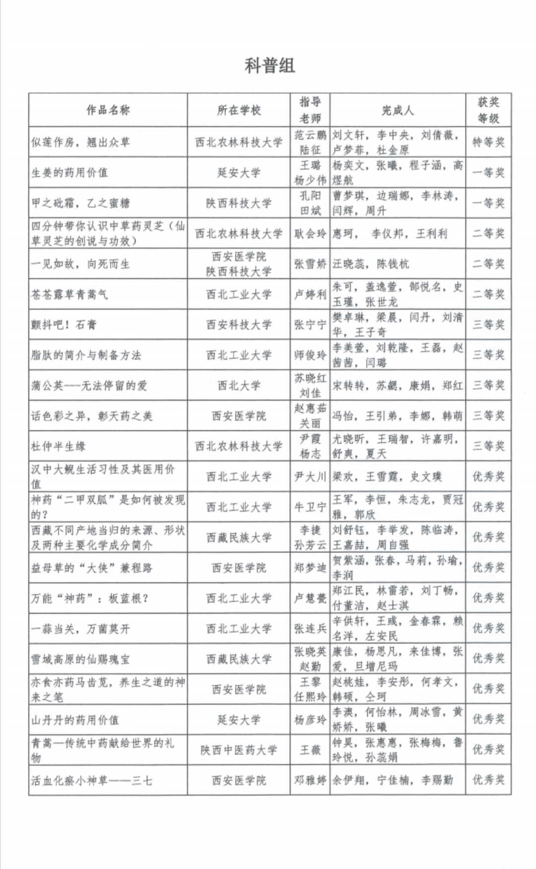 天然药物微视频大赛获奖作品奖金发放通知及获奖作品公示名单